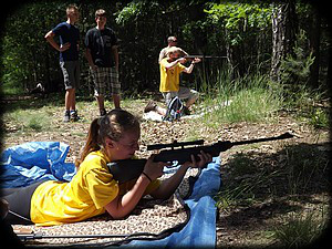 Ten den vyšlo krásné počasí, i když hlásili tropická vedra. Naše pouť vedla lesem, část i Jabkenickou oborou, takže nám bylo příjemně. Mezi prvními úkoly, které jsme navštívili, patřily šipky, šifry (stanoviště u kterého jsme potkali Babču a Bohuslava), zdravověda (kde jsme se moc nevytáhli (potřeba do příště sehnat někoho se zdravotnickými vědomostmi)). Jak jsem Martinovi poznamenal, ještě že taková zranění na kroužku nemíváme. Další velice zábavný úkol byl přejet rybník na raftu tam a zpět, což jsme zvládli na 100%, ale osobně se mi víc líbí kánoe, na raftu jsem jel poprvé v životě a vůbec jsem nevěděl jak sedět, ale nakonec jsme to doplácali. Velice mě tento rok potěšila střelba ze vzduchovky, protože naše úspěšnost byla víc jak poloviční. Ze starších jsme se ze dvou ran trefili všichni. Bohužel Moniika, Hanka a ani malý Martin svůj cíl netrefili.