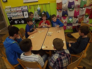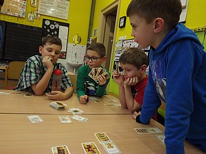 11. prosince, pondělí, 13.30. Schrödingerův herní klub zahajuje Deskohraní pro ZŠ Východní. Společně se skupinkou dětí ze třetí a páté třídy opět saháme po jedné z nejoblíbenějších karetních her v České republice - Bang! Přesouváme se na Divoký západ, kde nás čeká drsný život. Jako hráči na sebe bereme role pistolníků. Střílečky a honičky mezi desperády a šerifem jsou na denním pořádku. Šerif honí bandity, bandité střílí po šerifovi. Šerifovi pomocníci brání šerifa a jsou připraveni pro něj položit život. Kulky sviští kolem uší a vy musíte zjistit, kdo je kdo. Kdo z hráčů je pomocník šerifa? Kdo je bezcitný bandita? A kdo je odpadlík, který to hraje na obě stany tak, aby se stal novým šerifem? Cílem hry je vtipnou formou vystřílet role nepřátelské a přežít. Hra je velmi svižná, plná komunikace a humoru. Po dvou hodinové přestřelce tentokráte vítězí bandité.