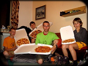 Večer se opakoval scénář předchozího dne – večeře, sprcha, BANG. Poslední noc zbylo spaní na zemi na mně a musím říct, že jsem si to užíval.