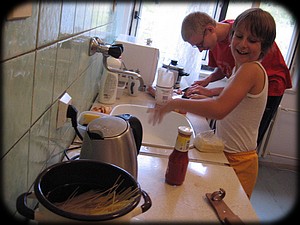 V den státního svátku v pátek 28.10. byl naplánován krátký výlet do okolí Trutnova, a jak jinak než spojený s lovem kešek. Ranní vstávání nám tentokrát nedělalo vůbec žádné potíže, protože jsme se nepřesouvali nikam daleko. Po snídani jsme vyrazili na lov kešek po Trutnově. První tři kešky jsme nenašli, takže náš den začínal nevesele. Naše cesta směřovala směr Bohuslavice a Čížkovy kameny, což byl nejvzdálenější bod dnešní trasy. Na kraji Trutnova nás čekala jedna opravdu speciání keška na bývalém skokanském můstku. Už jenom cesta tam byla malé dobrodružství. Martinova zkratka, co říct víc? Ještě že malý Martin měl lano, jinak bychom se asi pěkně prošli. Skokanský můstek, ale nebyl o nic lepší – asi třípatrová budova bez schodišť a žebříků, a keška až pod střechou. Já a oba Martinové jsme se vydali pro ni a Marek dělal podporu na zemi. Opět jsme využili lano, bez kterého by to opravdu nešlo. Nahoru vylézt bylo snadné, kešku jsme také našli docela rychle, ale dostat se dolů byl problém největší. Ještě že dole zůstal Marek a koordinoval náš sestup. Nakonec jsme se dostali na zem beze zranění a obohaceni o skvělý zážitek. Dál cesta pokračovala bez zajímavějších příhod až k Čížkovým kamenům, které jsme jen zběžně prohlédli, a poté naše cesta vedla během rovnou dolů s kopce skrz les a maliní na vlakové nádraží, odkud jsme se vezli zpět do Trutnova. V Trutnově jsme byli asi ve dvě hodiny odpoledne, takže nás čekal společný oběd, který jsme si sami vařili. Byly to špagety, které se nám opravdu podařily. Po krátkém poledním klidu jsme se vydali na další lov kešek po Trutnově. Pár jsme jich našli, došli jsme až na kraj Trutnova, na významné místo, protože zde byl zasazen jeden z nejvyšších stromů světa - sekvoj obrovská. Sice byla velká jako okolní smrky, ale za pár (tisíc) let je přeroste. Zde jsme se zapsali u kešky a šli zpátky. Na intr jsme došli už potmě. Po večeři a sprše se náš pokoj proměnil v baštu divokého západu, kde si vyřizovali bandité účty se šerifem, a ten se snažil nepadnout do léčky odpadlíkovi aneb BANG! U nás velmi oblíbená hra, u které jsme strávili podstatnou část večera. Hráli jsme do té doby, než jsme samou únavou neviděli na karty.