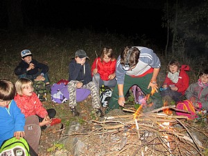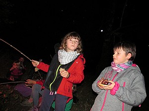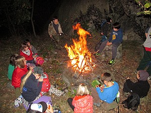 V pátek v podvečer vyráží skupina Stopařů na první společnou výpravu v novém školním roce. V nemalém počtu míříme skrz Kostelní les na naše oblíbené místo – Krvavou skálu. Cestou jsme museli nasbírat trochu chrastí se dřevem, jelikož na osamocené skále uprostřed louky se těchto surovin moc nevyskytuje. Vše vyskládáme na připravené ohniště, Honza zapaluje a hoří! Oranžově žlutý plamen se zvedl k obloze a ozářil malebné místečko pod skalní stěnou. Napichujeme buřty a pečeme. Mňam, mňam. Po deváté hodině uklízíme tábořiště, hasíme poslední žhavé uhlíky a přesouváme se do budovy DDM, kde usínáme zachumlaní ve spacácích při promítajícím Hotelu Transylvánia.