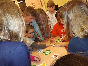 Po návratu do školy se vrháme na večeři a chvíli na to startujeme turnaj v karetní hře Gobbit. Ocitáme se na stejnojmenném ostrově ve zběsilém souboji o potravu. V rychlé postřehové hře se hráči snaží v potravinovém řetězci uchránit vlastní zvířata proti číhajícím soupeřům. Na kartách jsou zobrazena tři zvířata ve třech barvách, která sami sebe žerou právě dle své barvy a pozici v potravním řetězci: chameleon žere moskyta a na chameleonovi se zase pase kobra. Hra obsahuje také speciální kartu gorily, která zabíjí všechna tři zvířata, čímž je odešle na hřbitov mimo hru. Vítězem se stane ten, kdo má jako poslední před sebou vyložené nějaké karty. Po pěti soutěžních kolech si první místo vybojoval Štěpán Malý, následovaný Adélou Čermákovou a Eliškou Jindrovou. Výherci si vybojovali krásné deskové hry od společnosti Albi, které takto děkujeme za sponzorský dar.