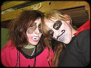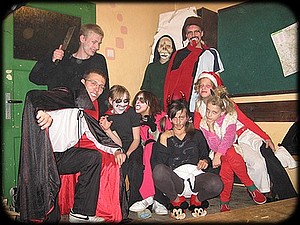 Byla hromada různých masek. Například byli čtyři upíři, ale jen dva byli normální (Vilma a Lepidlo), jeden byl zimní upír (já) a jeden byl postižený upír (Martin), potom byl jeden čertík (Lucka) a jedno čertí miminko (Monika), jeden jednonohý, jednoruký řezník se sekáčkem v ruce (Jirka), jeden zlý santa (Martina) a jako poslední nejlepší maska - ďábelská maska smrtky (Pepa).