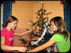 Večer jsme rozsvítili stromeček, rozdali jsme dárečky a šli hrát další hry. Já a Jirka jsme šli spát a ostatní nad námi hráli čokoládu. A u toho se nedalo spát, tak jsme se v 11 hodin šli ještě i s Pepou kouknout na úplněk. Když jsme se vrátili, tak někteří šli už definitivně spát a druzí pokračovali ve hrách do 1 ráno.