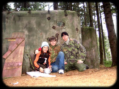 Asi v půli cesty, u rybníka za Křížovou horou, si Martin všiml, když chtěl zapsat naměřené časy ze soutěže, že ztratil mobil. Hnedka se vydal na zpáteční cestu, aby se po něm podíval. Tomáš se ho pokoušel prozvánět, ale nebyl tu signál. Když se mu to konečně podařilo, dovolal se a zvedl to Marek. To znamenalo, že mobil nechal doma. Tak jsme běželi za ním, jenže on nikde nebyl, tak jsme museli jít až na pastviny k Bínovi a najednou se objevil v lese. Jelikož ještě bylo brzo, tak jsme nechtěli jít domů, ale také se nám nechtělo vracet samou cestou (vedla do strašného kopce). Proto jsme zvolili zkratku. Ušli jsme tak 2-3 kilometry a narazili na močál. Martin šel první, já druhá a Tomáš třetí. Hráli jsme skoč uskoč a přeskoč. Bažinu se nám podařilo za nějakou chvilku překonat a brzy na to jsme za mírného deštíku dorazili na bunkr. A co jsme nespatřili? Dveře vylomený, bunkr vykradený. No nic, návštěvní sešit tam byl. Dokonce se nám tam ,,vandalové“ podepsali a zanechali zprávu. ,,Ahoj moc se nám tady líbilo, udržujte to tu pěkně.“
