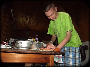 Po návratu na chatu nás čekal nejtěžší úkol celého pobytu – úklid. Během úklidu jsme si stihli uvařit společný oběd, který všem velmi chutnal. Před odchodem z chaty proběhl ještě malý turnaj v lakrosu, který jsem se svým týmem těsně prohrál.