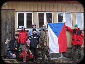 Já s Pepou jsme dorazili na místo pobytu jako předvoj, abychom chatu připravili na příchod expedice. Cesty na chatu by se daly označit jako silnice 8. třídy, protože na jedné byla vrstva ledu, po které bylo nebezpečné jet, a druhá by se dala srovnat s denně používaným tankodromem. Po zprovoznění základního tábora jsme se vydali s Pepou naproti Martinovi, který vezl druhou část vybavení a hlavně zásoby na celý pobyt. Nakonec se nám podařilo na chatu dostat všechny zásoby. Martin se vrátil zpět do Červené Vody pro členy naší expedice a my s Pepou jsme si dali vydatný oběd a čekali, až dorazí zbytek. Chata se nachází na dobré pozici, takže jsme Martina a ostatní viděli už z dálky. Těsně před jejich příchodem jsme jim schovali batohy po chatě, ať si trochu chalupu projdou. Chata měla obytné přízemí i horní patro, ale my se zabydleli jen v přízemí. Velice zajímavý byl sklep, ve kterém se nacházela i umývárna (nebyla to koupelna).