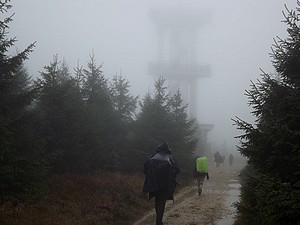 Pátek, 28. září, státní svátek, volno ve škole, 9.00, odjezd na výpravu. Tentokráte vlakem. Hurá na Liberec a dále do Nového Města pod Smrkem. Z tamního nádraží vyrážíme po modré turistické značce skrz město, palačinky s kofolou U spálené hospody, perlivý železitý pramen Novoměstské kyselky, přejetou zmyji s rozmáčklou hlavou, Streitův obrázek a Pramen mládí až na samotný vrchol Smrku. To již zhruba dva km kráčíme deštěm a mlhou hustou tak, že jsme rozhlednu nemohli ani najít. V přeplněné útulně v přízemí rozhledny se pokoušíme převléci do něčeho suchého a teplého. Nikdo již nechce ven vystrčit ani nohu. Pouštíme se do čtyř hodinové karetní hry Bang a ve 20.30, po tom co do skrýše před nepřízní počasí doráží další turisti a opětovného přerozdělení míst k ležení lezeme do TEPLA spacáků. Celou noc posloucháme strašidelné skučení a kvílení větru.